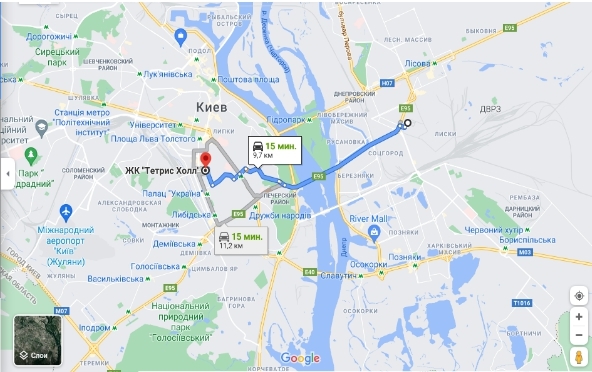 ЖК «Tetris Hall» находится по адресу улица Деловая 1/2. До Крещатика на машине ехать 6 минут. До станции метро Олимпийская 6 минут пешком, до станций Дворец Украина и Площадь Льва Толстого 5 мнут езды и 15 пешком. За 9 минут можно дойти до НСК Олимпийский.